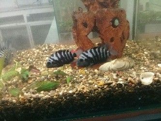 В кружке «Аквариумистика и террариумистика» у нас была уникальная возможность наблюдать, как цихлазомы чернополосые отложили икру на дно керамического грота, которое пара заранее тщательно очистила от остатков продуктов жизнедеятельности. Это случилось 12 января 2018 года. Икра проклюнулась в течение 2 суток. Спустя сутки молодь уже начала потихоньку выплывать из грота. Родители следили за ними, уплывших мальков аккуратно брали в рот и возвращали в семью к остальным. Спустя 5 дней, когда мальки начали хорошо плавать, родители начали выводить их на прогулку.