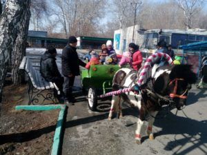 А для любителей животных, на территории центра, было организовано катание на пони верхом и в тележке.