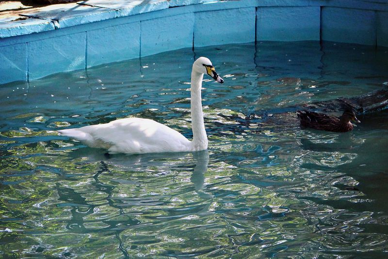 С тех пор он тоже стал старожилом центра и ежедневно покоряет сердца посетителей своей красотой и изяществом. В 1990 году неравнодушные люди привезли молодого, истощённого степного орла, у которого погибли родители и сам не мог найти себе пищу. Так впервые в биологическом центре появился степной орел. Лебедь Яша тоже не смог выжить на воле, из-за травмы крыльев, которую он получил от браконьеров. Краснокнижная птица чувствует себя в центре как дома. Даже в знак благодарности всегда встречает педагогов, юннатов и работников центра голосистым пением и кланяется своим фирменным, красивым поклоном.