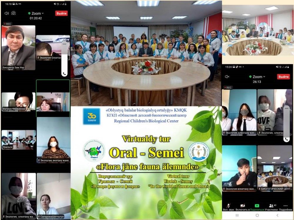 11 ноября 2021 года прошел Республиканский виртуальный тур «Уральск — Семей», приуроченный к знаменательной дате 30-летия дня Независимости Республики Казахстан. В необычном формате телемоста кружковцы биологического центра г. Семей и юные натуралисты эколого- биологического центра г. Уральск познакомились и подружились на встрече. Столько впечатлений у детей и коллег вызвал виртуальный тур, особенно когда есть чем поделиться.