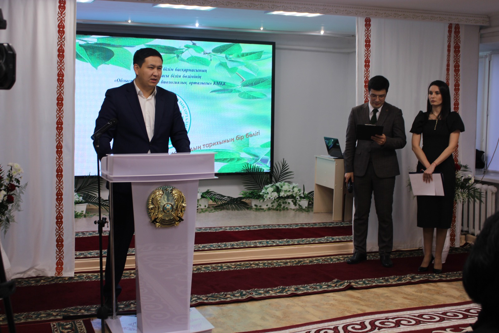 Директор биологического центра Масалимов Сейсен Ешенгазинович отметил в рамках юбилея биологического центра знаменательное событие – почтить память Валерию Николаевичу Дядову минутой молчания, открытие стенда, а также возложение цветов на открытии мемориальной доски на территории центра.