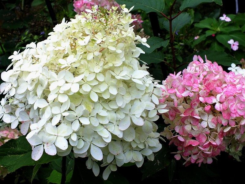 В биоцентре возле маньчжурского ореха красуется прекрасная гортензия метельчатая. Она настолько хорошо, что бессменно занимают самую верхушку цветочных парадов. Крупные и яркие соцветия гортензий состоят из больших цветков с четырьмя окрашенными «лепестками», своеобразных «обманок», настоящие же цветы — мелкие и невзрачные, запрятаны в глубине, среди яркого соцветия метелки. Уникальный кустарник привлекает внимание гостей, горожан, посетителей города. Они считаются цветами короткого дня, поэтому и начинают цвести, когда дни идут на убыль и являются одними из самых пышных и роскошных цветов. Соцветия, отцветая, хорошо используются в цветочных композициях, при составлении поделок из природного материала. Разнообразие расцветок не перестаёт поражать и восхищать: белые и кремовые, розовые они одни способны украсить весь мир, не повторяясь и не утомляя однообразием. Самое удивительное то, что можно поменять окраску соцветий, если изменить кислотность почвы: если она нейтральная или слабощелочная цвет розовый, если кислая – голубой. Однако «перекрашивание» происходит по мере взросления куста: посадив розовую гортензию в кислую почву, можно увидеть голубые соцветия лишь спустя несколько лет, а с помощью искусственного окрашивания можно получить расцветку благодаря раствору алюминиевых или железных квасцов из расчета 5 л на молодое растение.