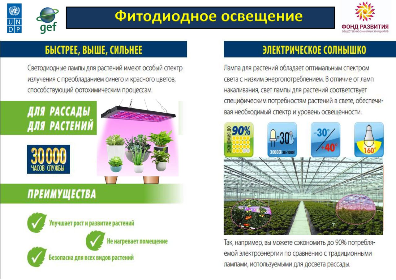 От действия фитоламп, установленных в оранжерее осенью прошлого года, первые результаты стали видны уже зимой – большинство растений одновременно и массово зацвели, чего раньше не было. Фитолампы, являющиеся еще и энергосберегающими, благоприятно действуют на растения, так как продлевают светлый и теплый период (свет близок по спектру солнечному), что немаловажно в условиях резко-континентального климата региона.
