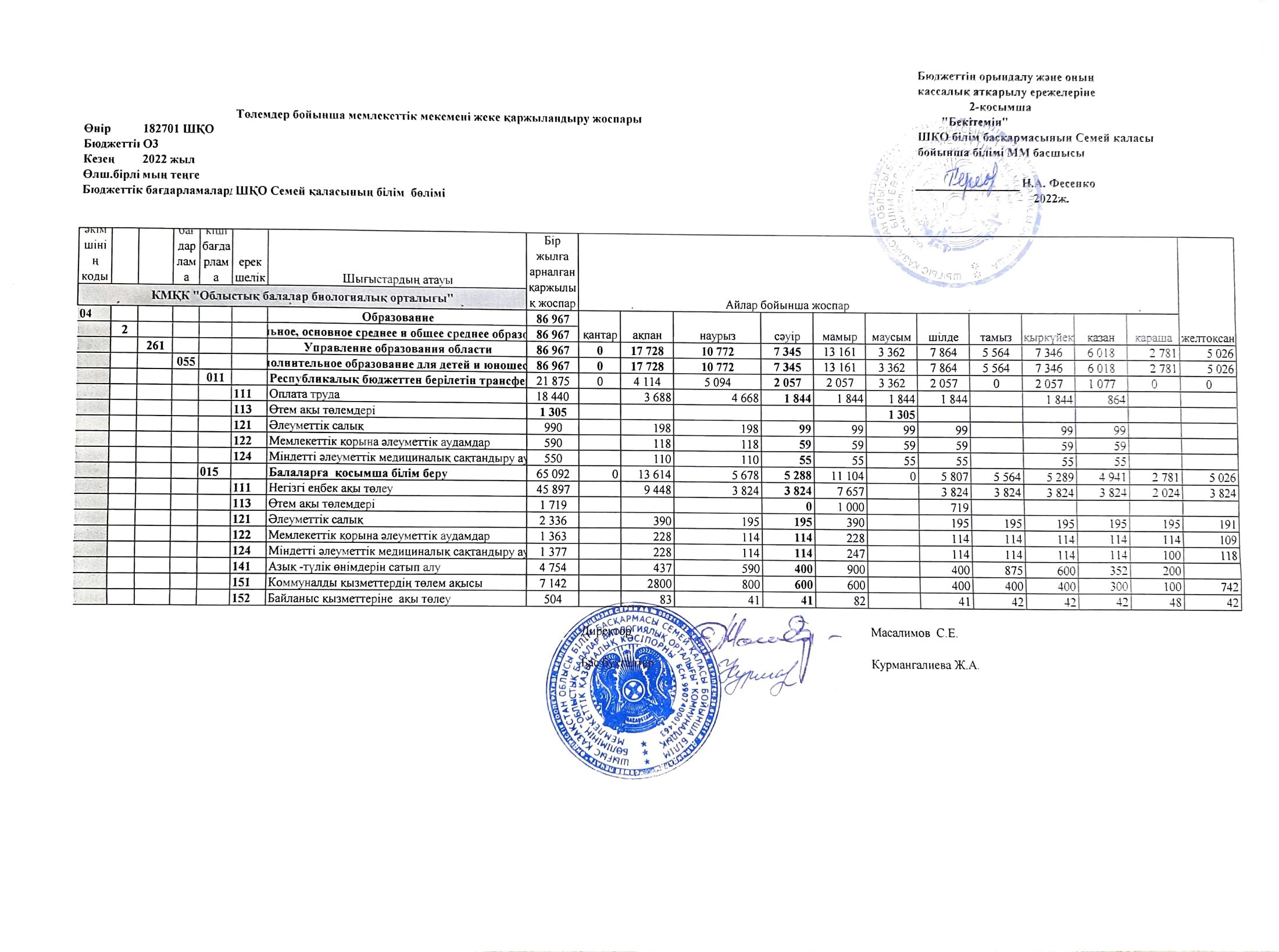 Төлемдер бойынша мемлекеттік мекемені жеке қаржыландыру жоспары
